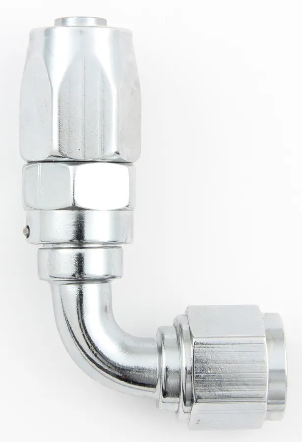 Fitting – Hose End – 2000 Series Pro-Flow – 90 Degree – 6 AN Hose to 6 AN Female – Swivel – Aluminum – Chrome – Each
