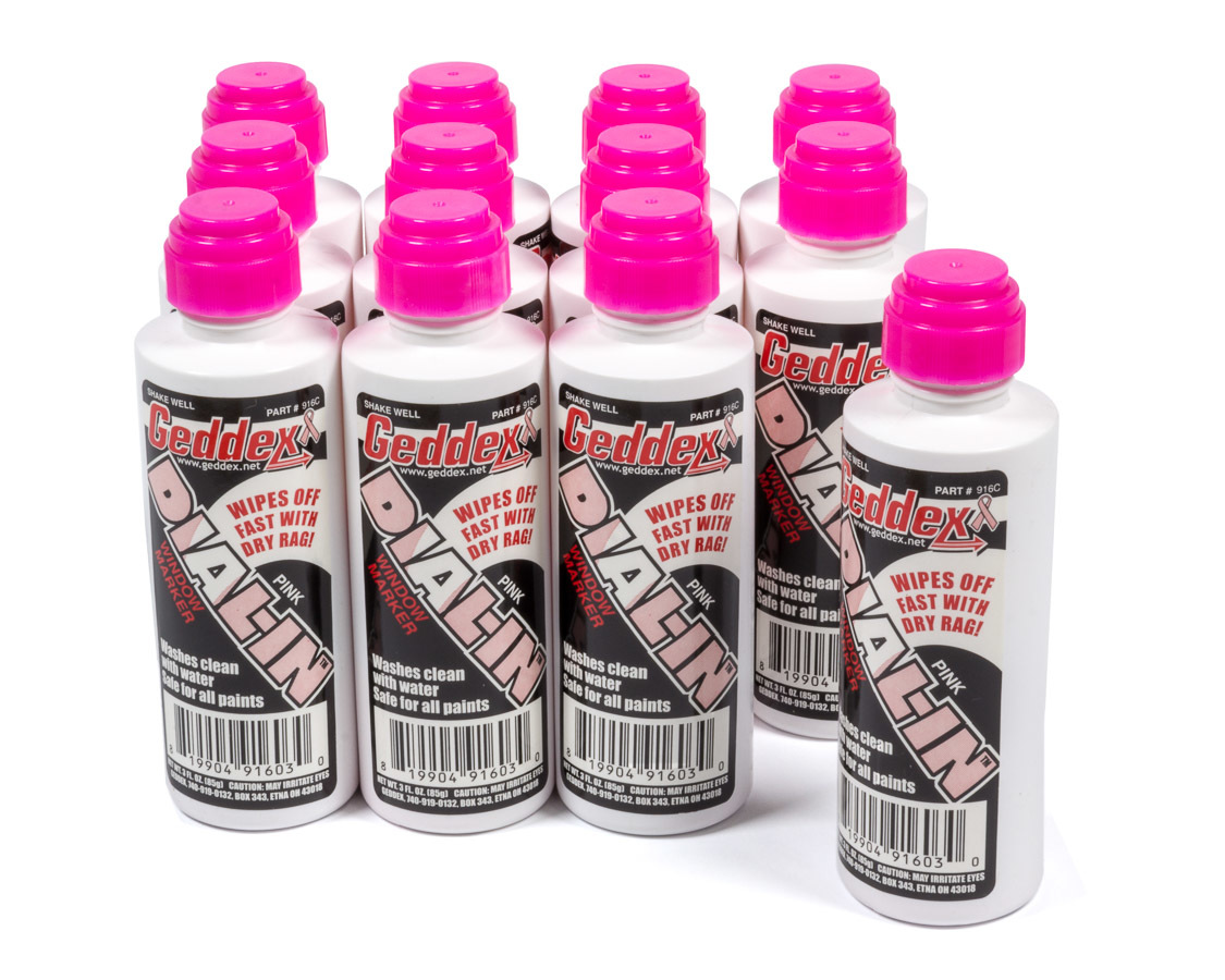 Geddex manufactures Dial-In brand markers for easy write on-wipe off tracking of settings and times. Geddex also offers a full range of exterior cleaning products designed to bust through tough dirt like road grime and rubber residue without harming painted surfaces.