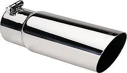 Exhaust Tip – Clamp-On – 2.5 in Inlet – 3 in Round Outlet – 8 in Long – Single Wall – Cut Edge – Angled Cut – Stainless – Polished – Each