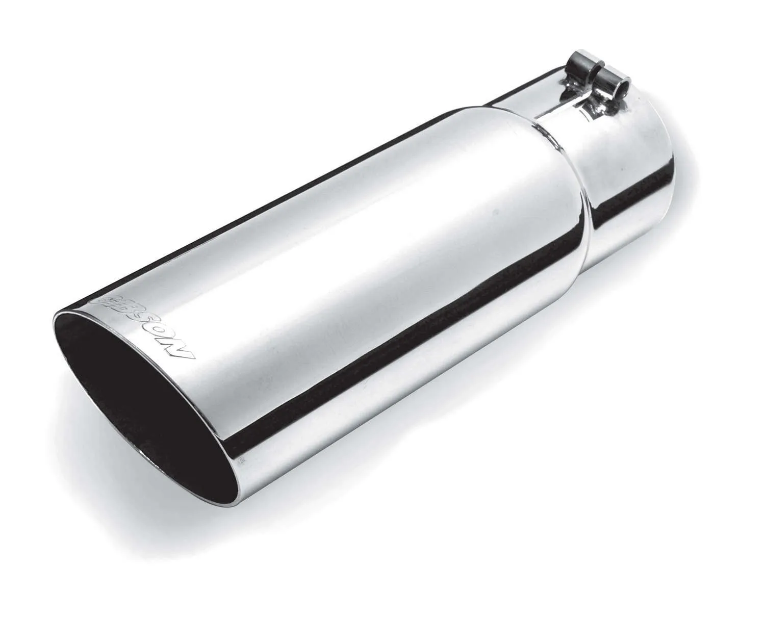 Exhaust Tip – Clamp-On – 2.25 in Inlet – 3.5 in Round Outlet – 12 in Long – Single Wall – Cut Edge – Angled Cut – Stainless – Polished – Each