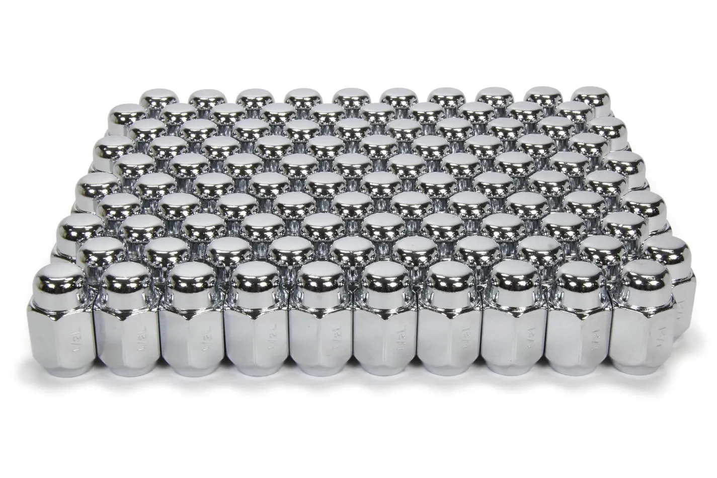 Lug Nut – Acorn – 1/2-20 in Left Hand Thread – Duplex – 13/16 in Hex Head – 60 Degree Seat – Closed End – Steel – Chrome – Set of 100