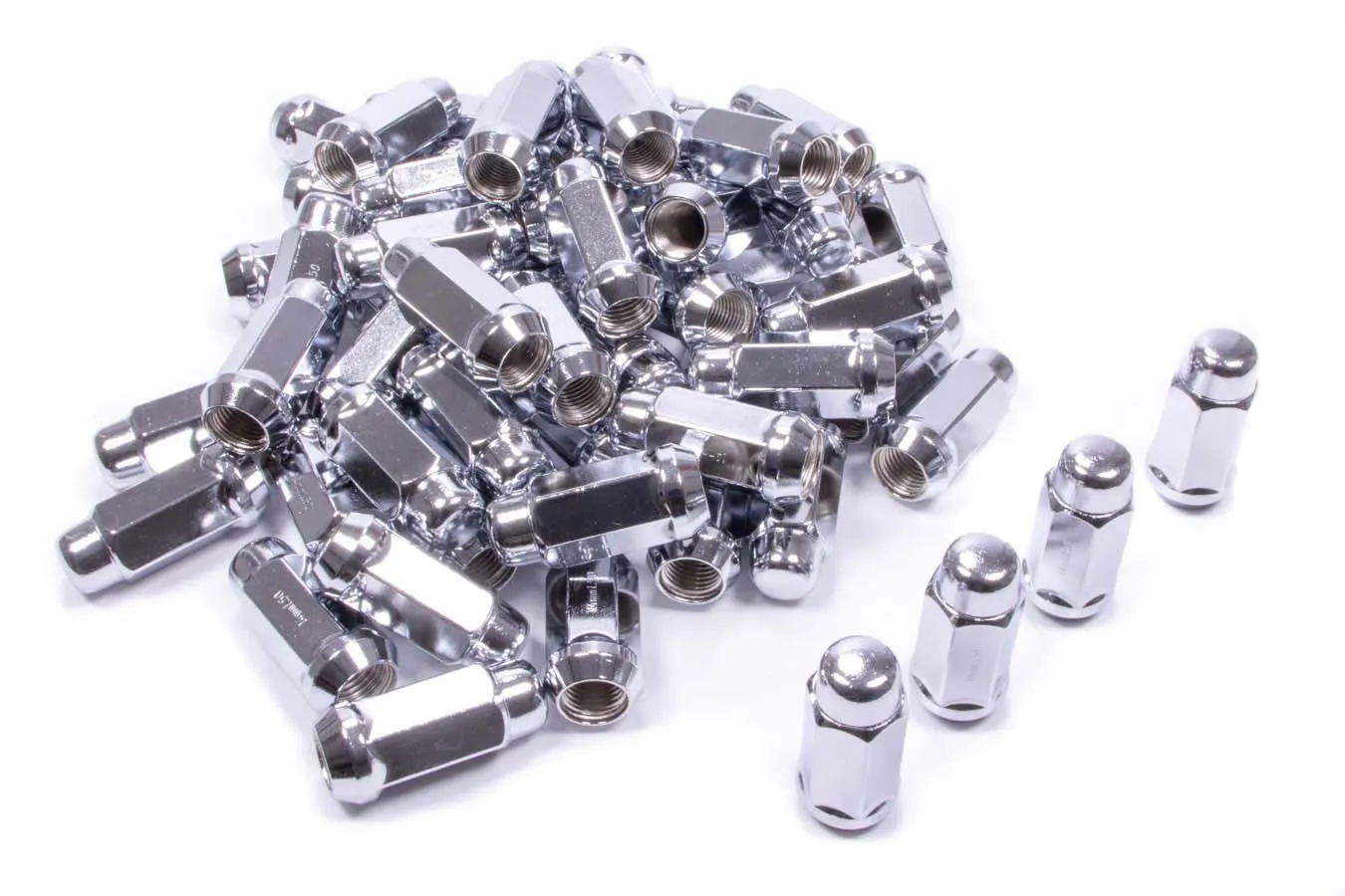 Lug Nut – Bulge Acorn Extra Long – 1/2-20 in Right Hand Thread – 3/4 in Hex Head – 60 Degree Seat – Closed End – Heat Treated – Steel – Chrome – Set of 60