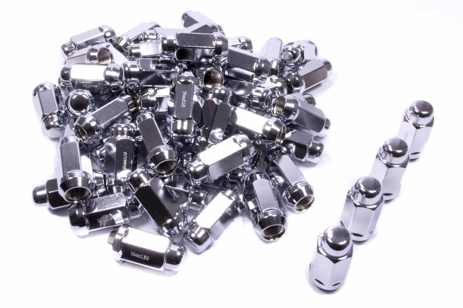 Lug Nut – Extra Long Acorn Bulge – 9/16-18 in Right Hand Thread – 13/16 in Hex Head – 60 Degree Seat – Closed End – Steel – Chrome – Set of 60