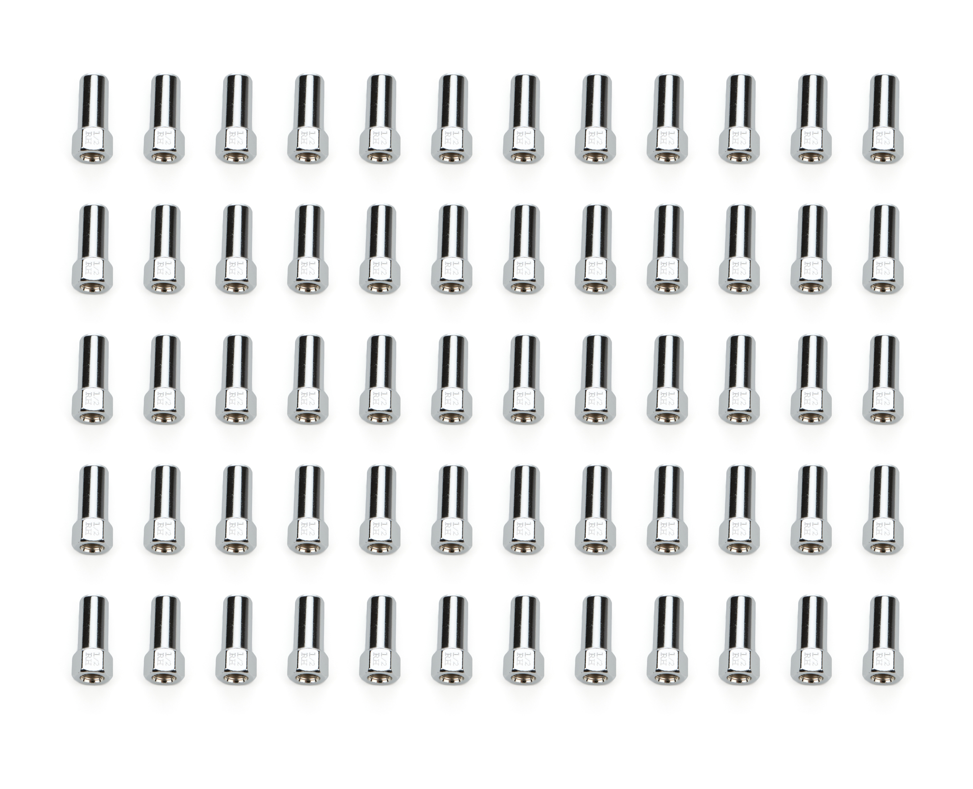 Lug Nut – 1/2-20 in Thread – 13/16 in Hex Head – 1.38 in Shank – Open End – Steel – Chrome – Set of 60