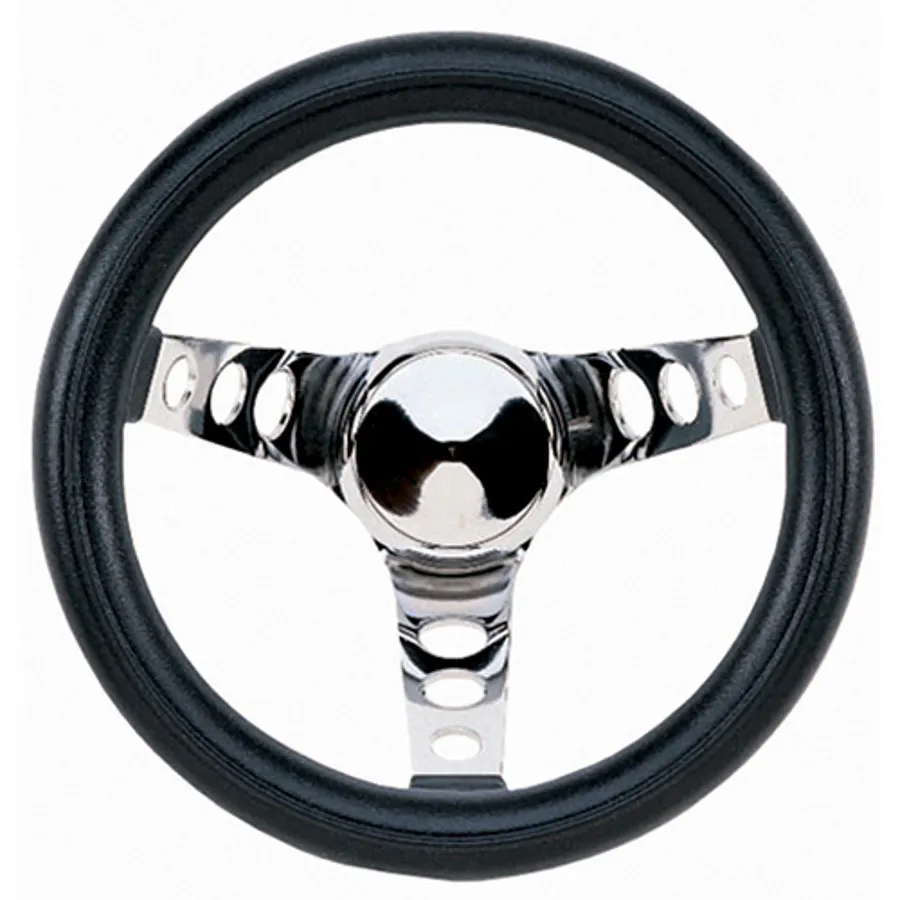 Steering Wheel – Classic Series – 10 in Diameter – 5.5 in Dish – 3-Spoke – Black Foam Grip – Steel – Chrome – Each