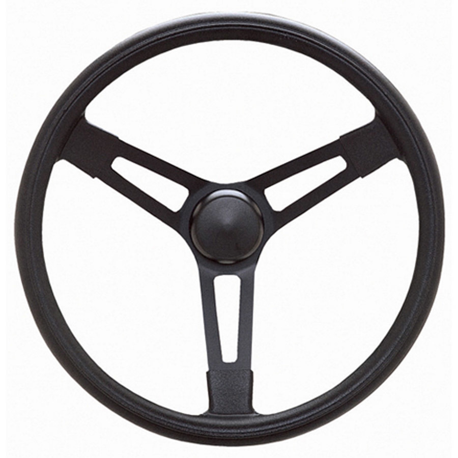 Steering Wheel – Performance Series – 16 in Diameter – 3.125 in Dish – 3-Spoke – Black Foam Grip – Steel – Black Powder Coat – Each
