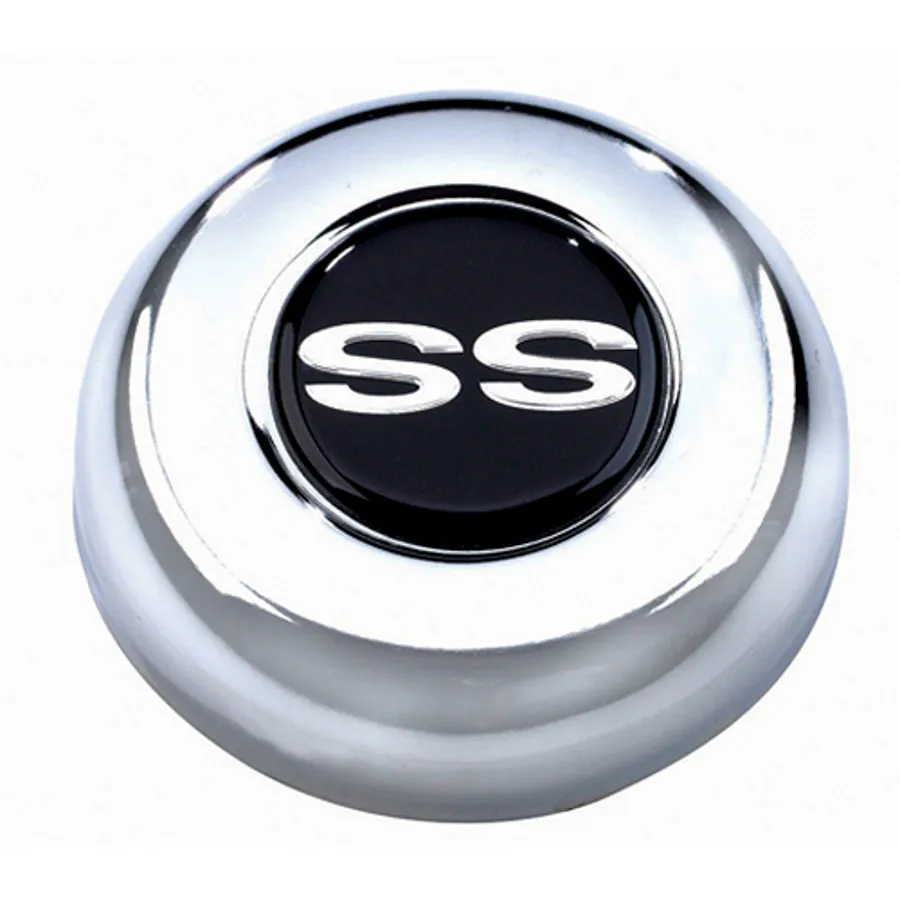 Horn Button – Black / Silver Chevrolet SS Super Sport Logo – Steel – Chrome – Grant Classic / Challenger Steering Wheels – Each