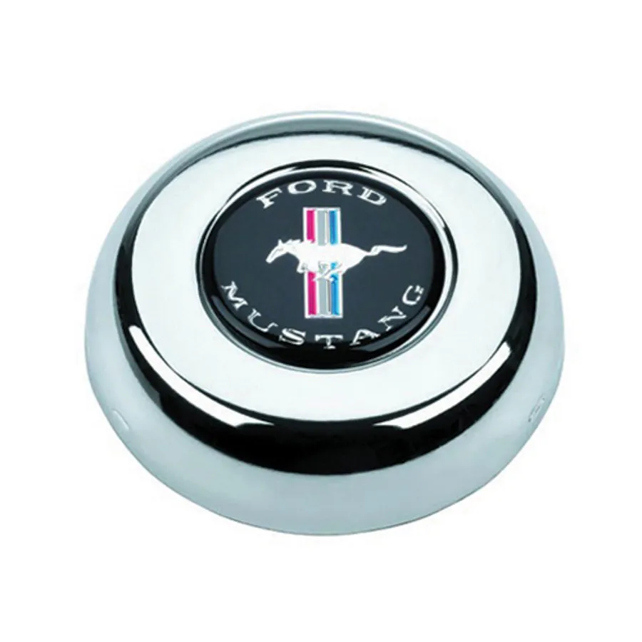 Horn Button – Black / Blue / Red / White / Silver Mustang Logo – Steel – Chrome – Grant Classic / Challenger Series Wheels – Each