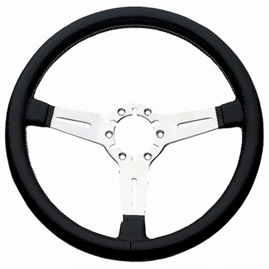 Steering Wheel – Corvette – 14 in Diameter – Flat – 3-Spoke – Black Leather Grip – Aluminum – Polished – Chevy Corvette 1963-75 / 1977-82 – Each