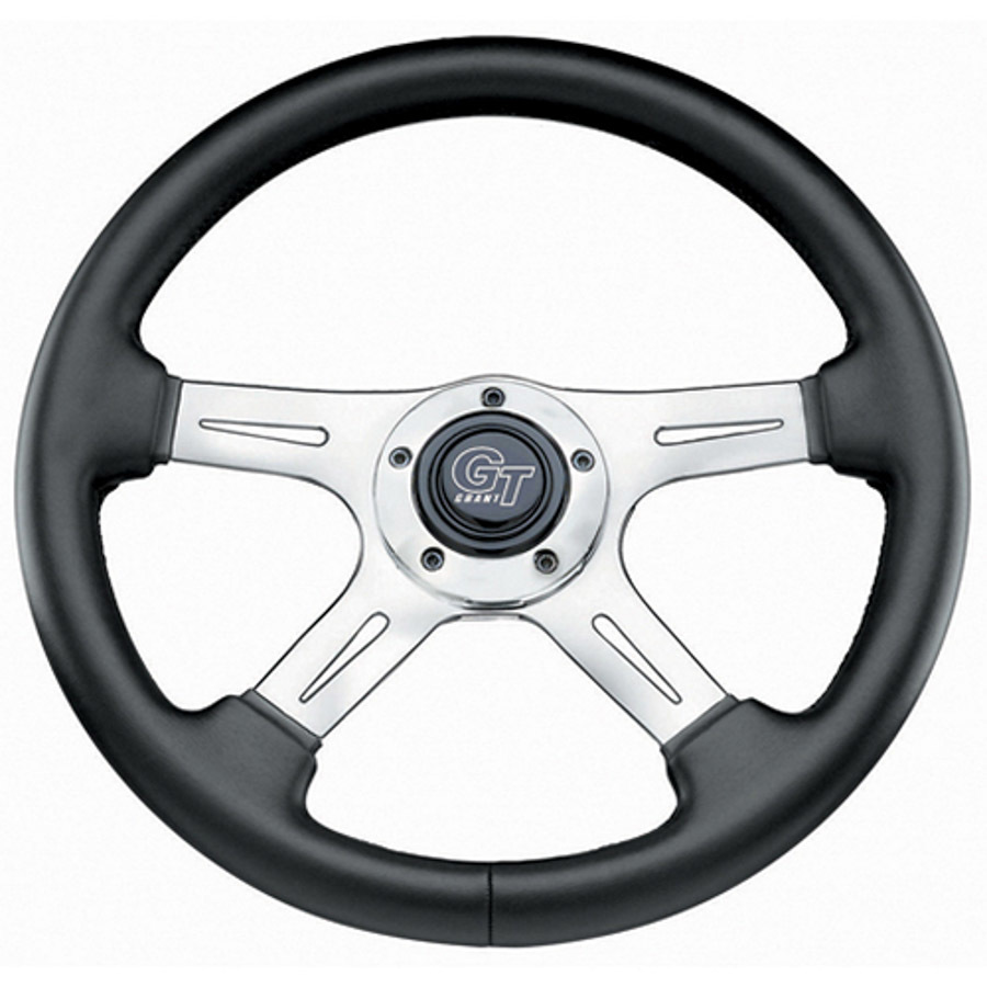 Steering Wheel – Elite GT – 14 in Diameter – 3.75 in Dish – 4-Spoke – Black Vinyl Grip – Aluminum – Polished – Each