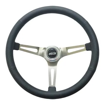 Steering Wheel – GT3 Retro – 15 in Diameter – 4.625 in Dish – 3-Spoke – Black Leather Grip – Stainless – Brushed – Each