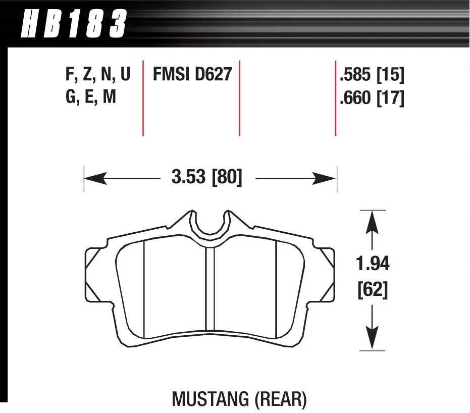 Brake Pads – HPS Compound – High Torque – Rear – Ford Mustang 1994-2004 – Set of 5