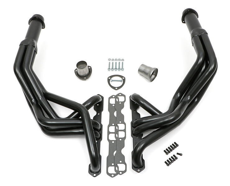 Headers – Street – 1.75 in Primary – 3 in Collector – Gaskets / Hardware Included – Steel – Black Paint – Small Block Chevy – Chevy Fullsize Car 1955-57 – Pair