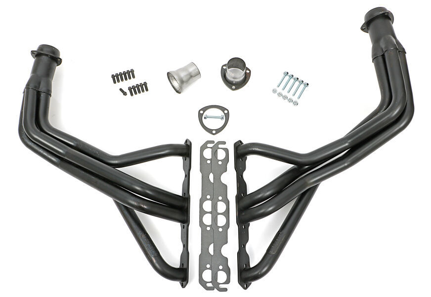 Headers – Street – 1.625 in Primary – 3 in Collector – Gaskets / Hardware Included – Steel – Black Paint – Small Block Chevy – Jeep CJ 1976-86 – Pair