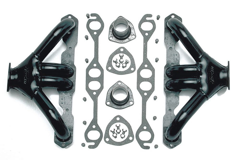 Headers – Tight Tubes – 1.625 in Primary – 2.5 in Collector – Gaskets / Hardware Included – Steel – Black Paint – Small Block Chevy – Street Rod – Chevy Fullsize Car 1955-57 – Pair