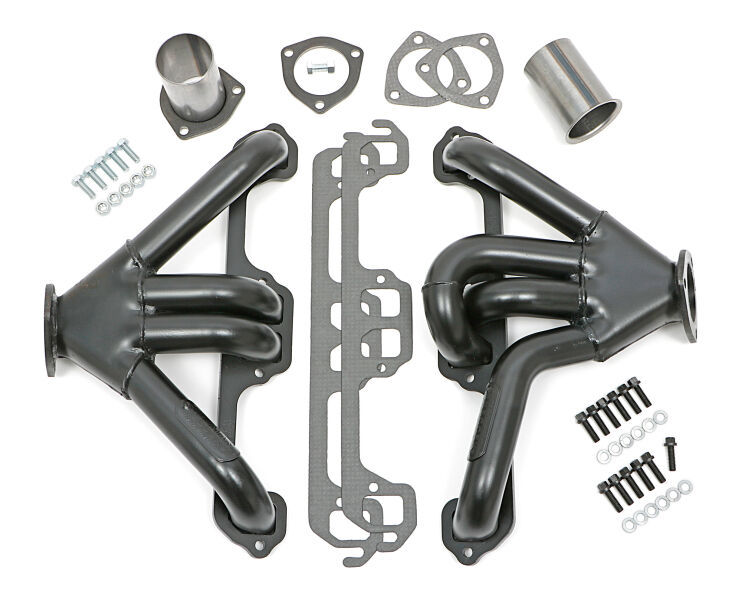 Headers – Tight Tubes – 1.625 in Primary – 3 in Collector – Gaskets / Hardware Included – Steel – Black Paint – Small Block Mopar – Mopar A-Body / B-Body / E-Body / Truck / Van 1967-76 / Street Rod – Pair