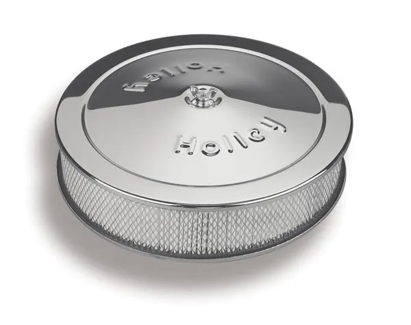 Air Cleaner Assembly – 14 in Round – 3 in Tall – 5-1/8 in Carb Flange – Holley Logo – Steel – Chrome – Kit