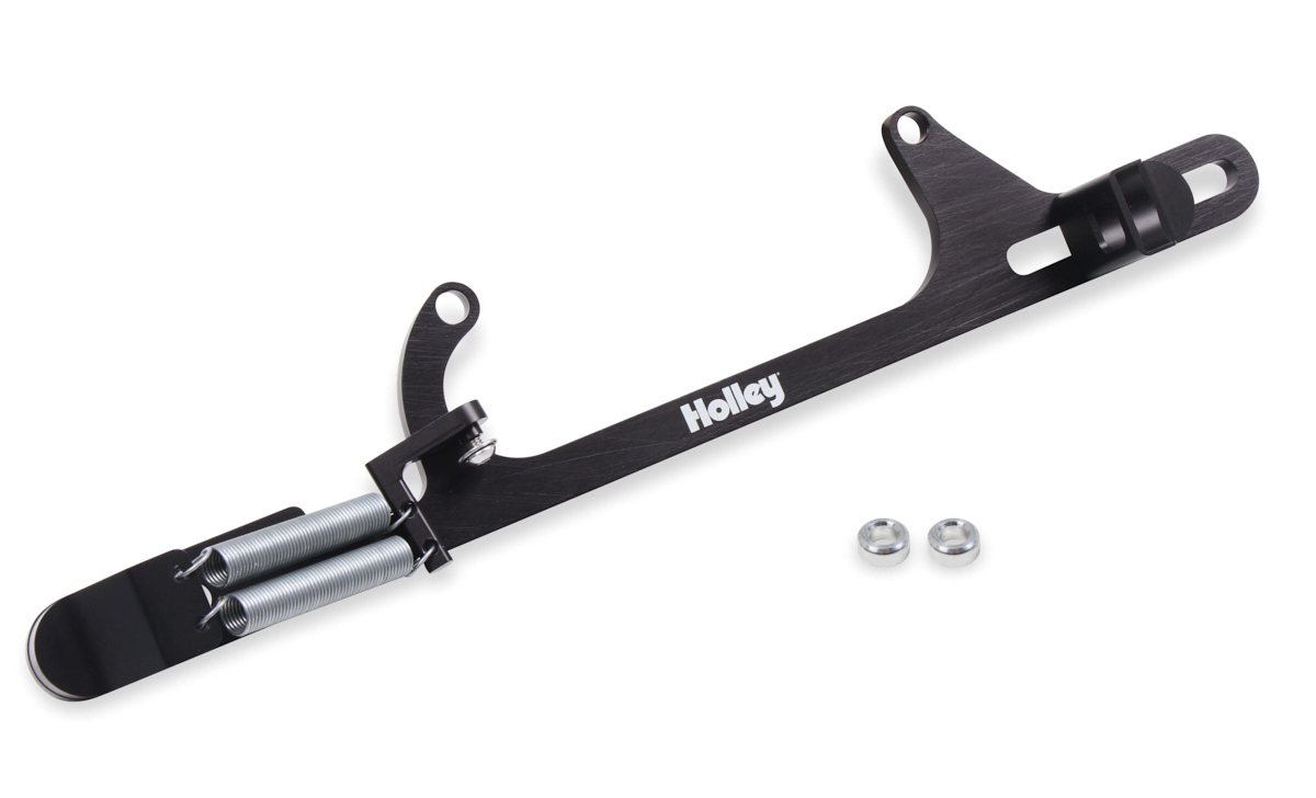 Throttle Cable Bracket – Carb Mount – Return Spring – Aluminum – Black Anodized – GM Cable – Dominator Flange – Kit