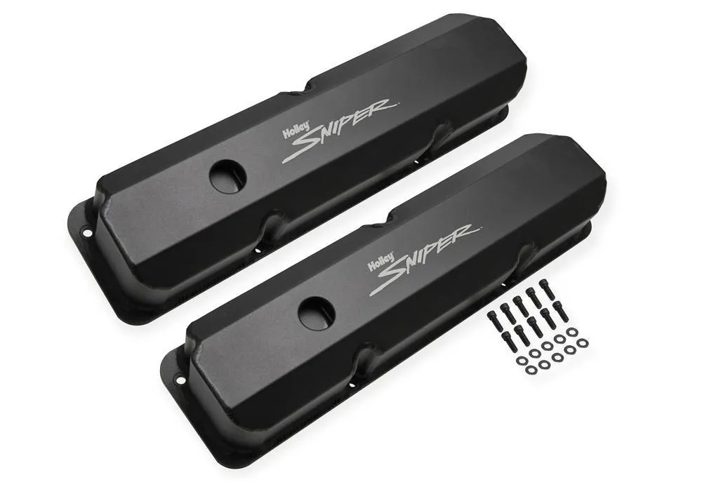 Valve Cover – Sniper – Tall – Baffled – Breather Holes – Sniper Logo – Aluminum – Black Anodized – FE-Series – Pair