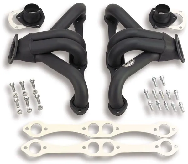 Headers – Super Competition – Block Hugger – 1.625 in Primary – 2.5 in Collector – Gaskets / Hardware Included – Steel – Black Paint – Small Block Chevy – Universal – Pair