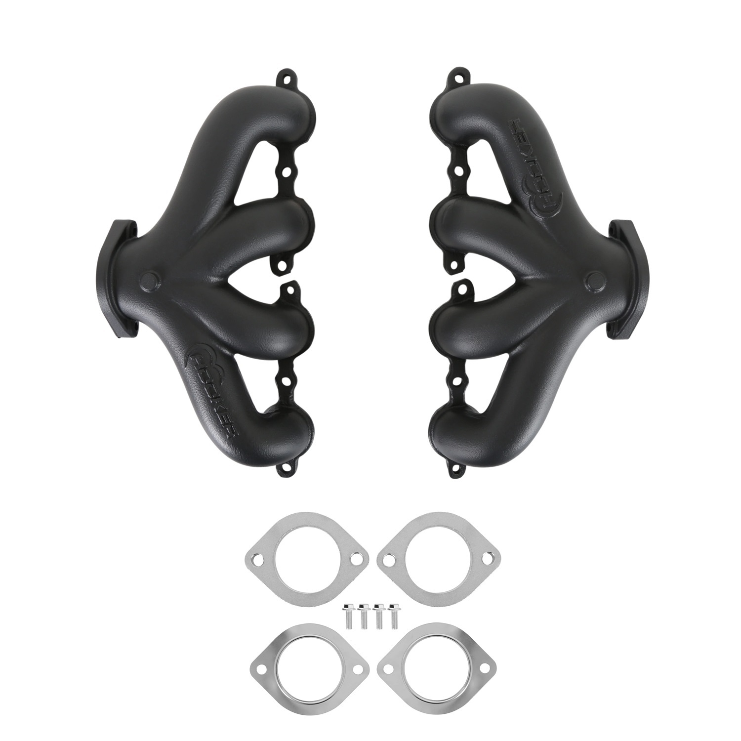 Exhaust Manifold – BlackHeart – Center ump – 2.5 in Outlet – Cast Iron – Black Ceramic Coated – GM LS-Series – Pair
