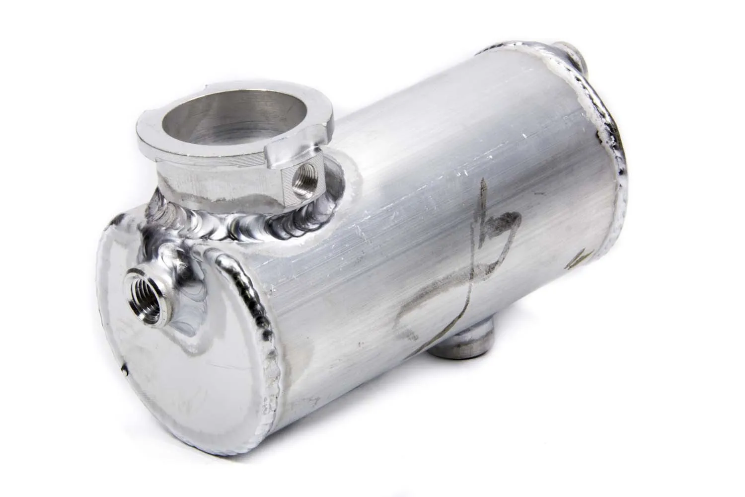 Recovery Tank – Coolant – 23.5 oz – 3 in Diameter – 6 in Long – Dual 1/4 in NPT Female Inlets – 3/8 in NPT Female Outlet – Aluminum – Natural – Each