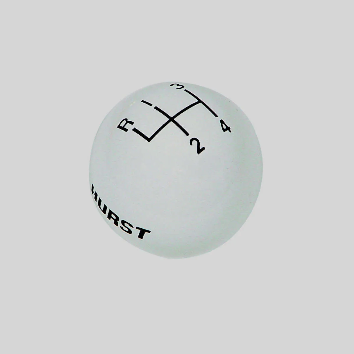 Shifter Knob – 3/8-16 in Thread – Hurst Logo – Plastic – White – 4 Speed – Universal – Each