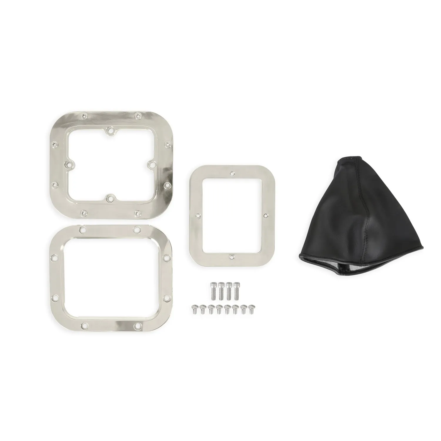 Shifter Boot and Ring – 6.75 in x 6 in Base – Rectangle Boot – Rubber / Aluminum – Black / Polished – Universal – Kit