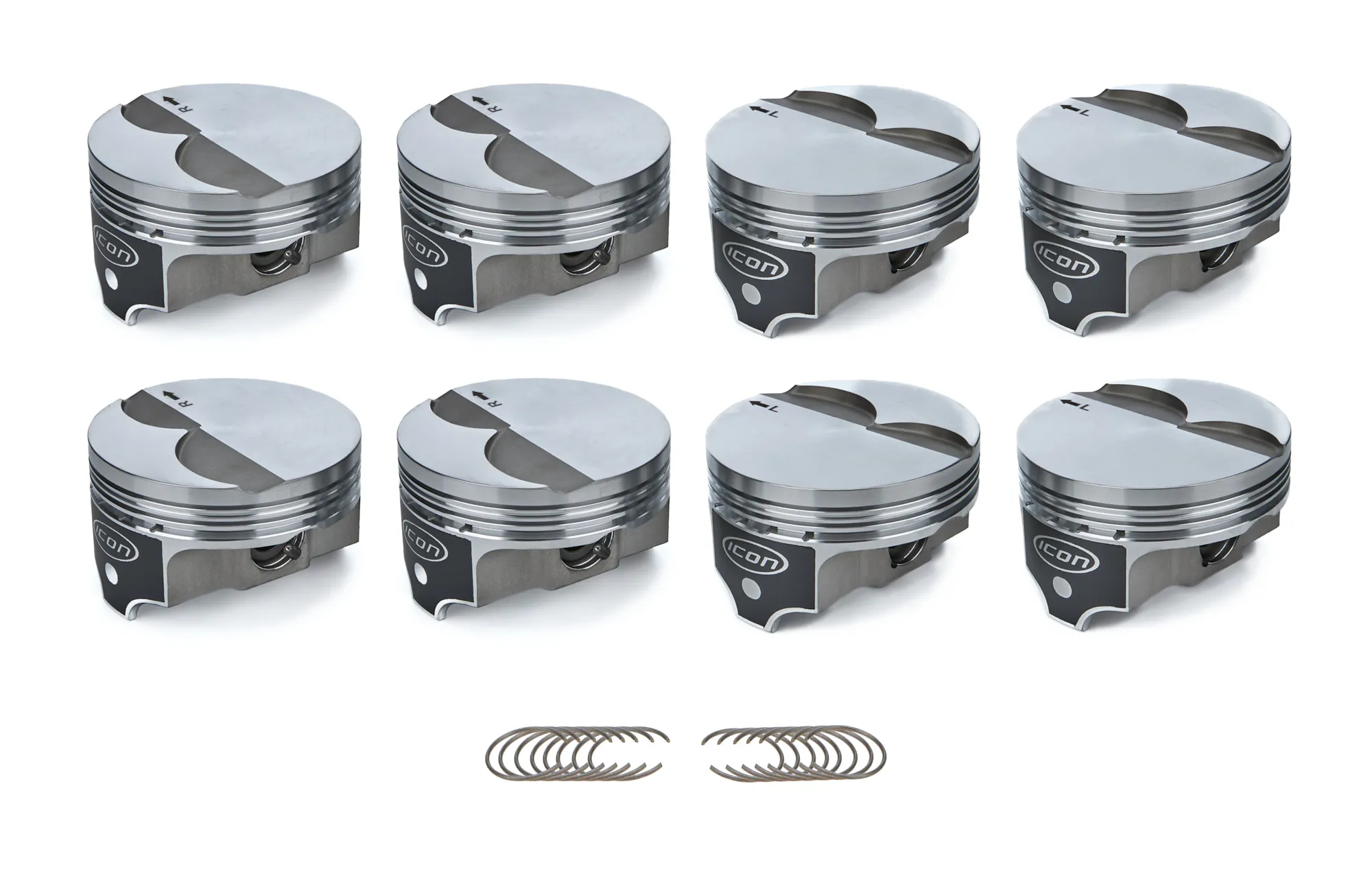 Forged from high-strength aluminum, Icon Pistons are lighter than many competitive pistons without sacrificing strength or integrity. Icon Pistons are available in a number of configurations to fit Chevy and Ford V8s.