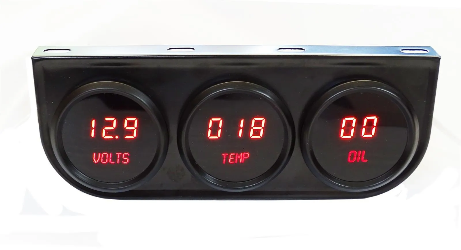 Gauge Panel Assembly – Digital – 2-1/16 in Diameter Gauges – Voltmeter / Water Temperature / Oil Pressure – Black Face – Red LED – Kit