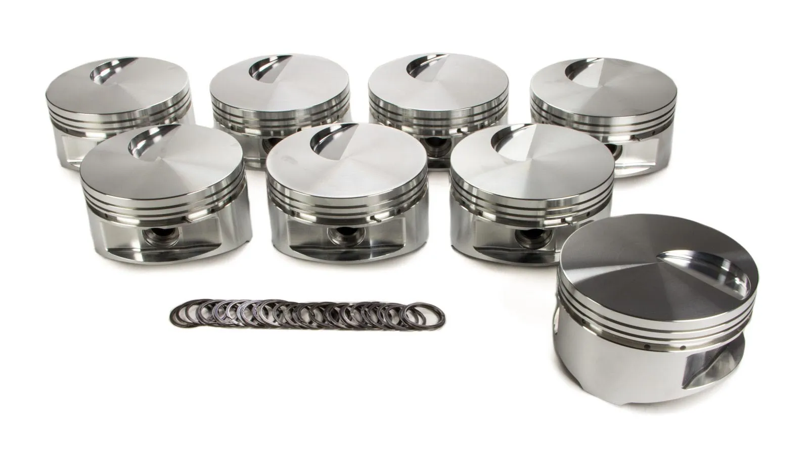 Piston – 460 Flat Top – Forged – 4.440 in Bore – 1/16 x 1/16 x 3/16 in Ring Grooves – Minus 3.00 cc – Big Block Ford – Set of 8