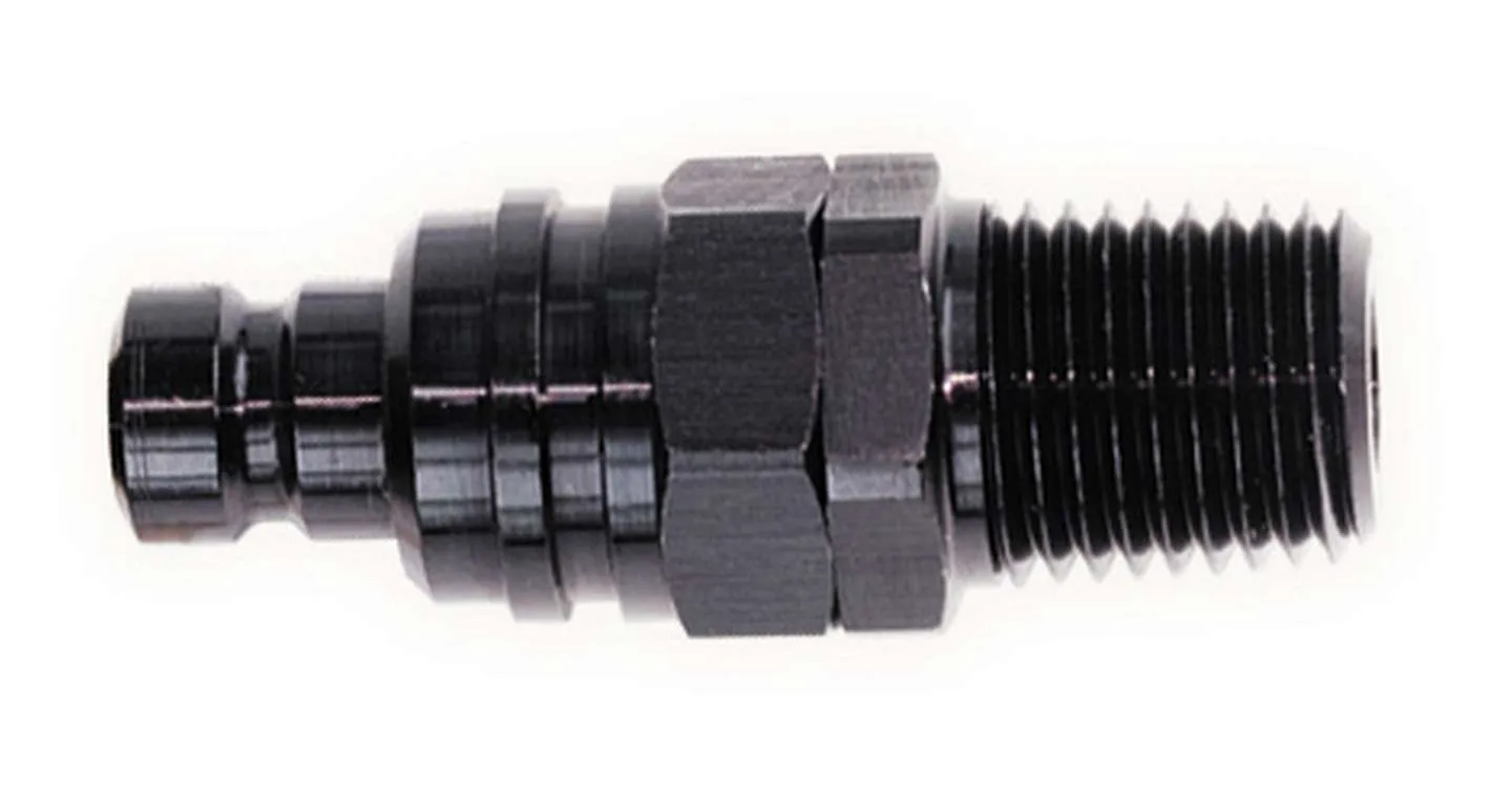 Quick Release Adapter – 5000 Series – Straight – 1/2 in NPT Male to Quick Release Plug – Valved – FKM Seal – Aluminum – Black Anodized – Each