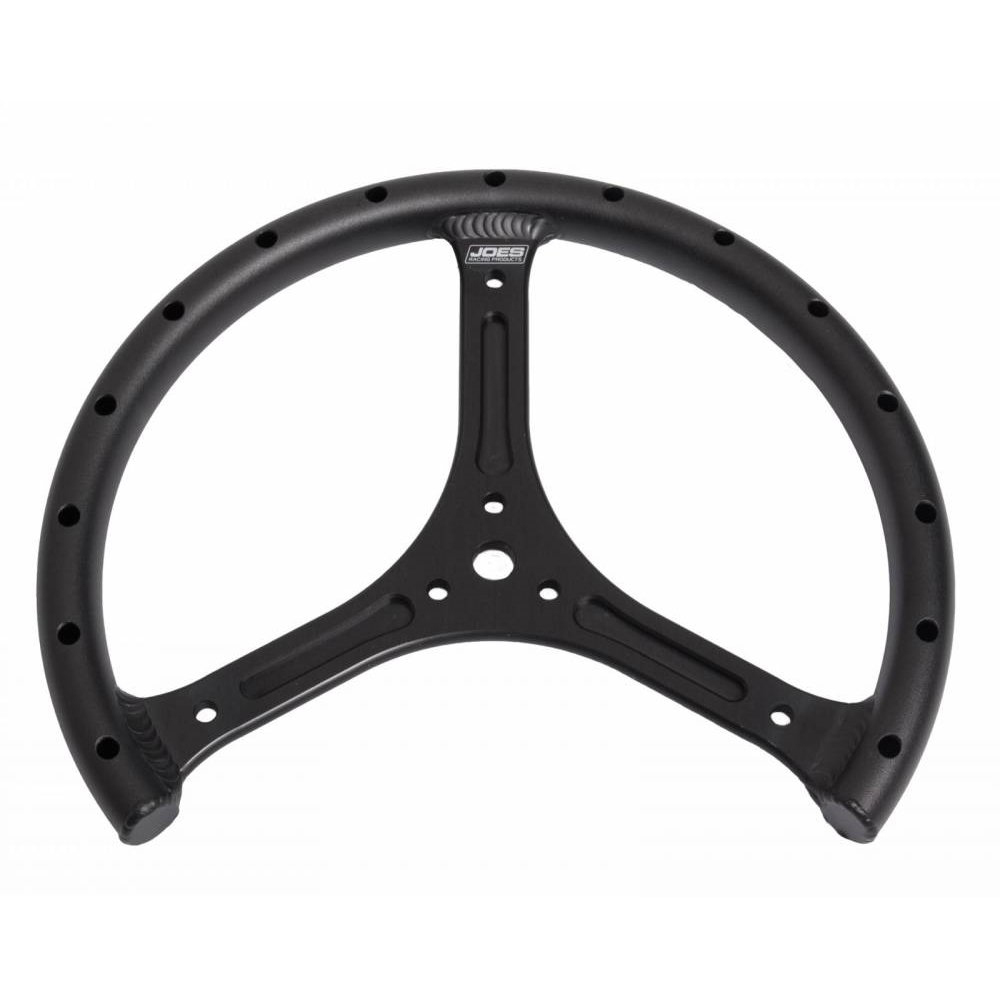Steering Wheel – 11 in Diameter – 1/3 Cut Out – Flat – 3-Spoke – Drilled / Shot Peened Grip – Aluminum – Black Anodized – Quarter Midget – Each