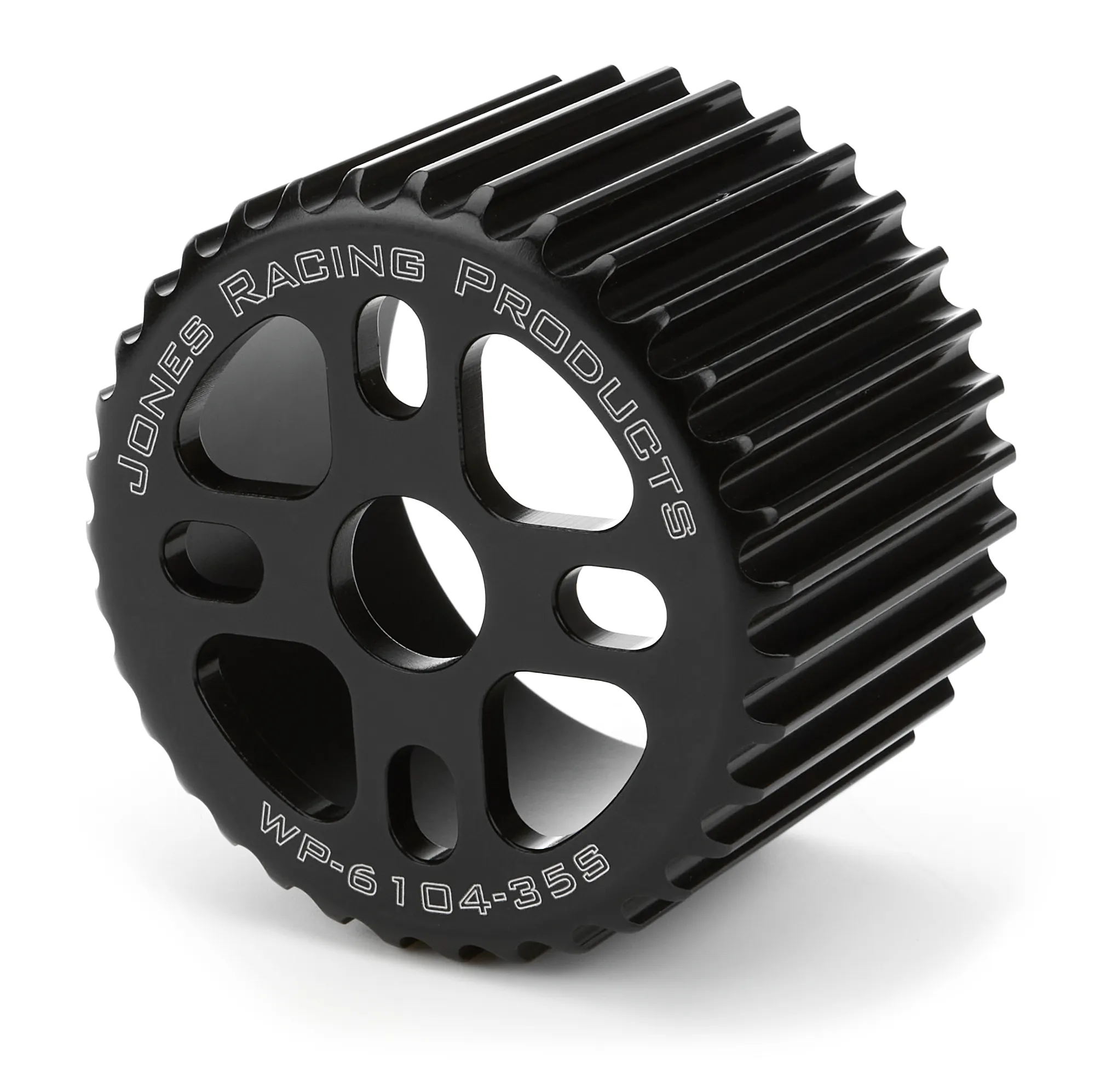 Water Pump Pulley – HTD – 2-1/4 in Wide – 35 Tooth – 5/8 in or 3/4 in Shaft – 4-Bolt Pattern – Aluminum – Black Anodized – Universal – Each