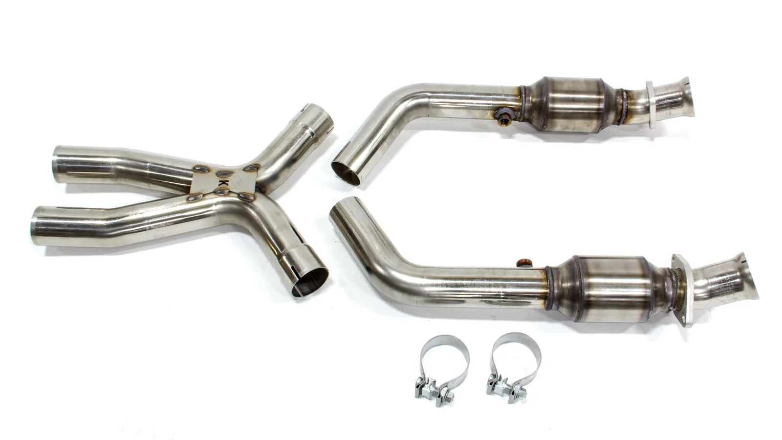 Exhaust X-Pipe – 2.5 in Diameter – Converters – Stainless – Natural – Ford Modular – Ford Mustang 2005-10 – Each