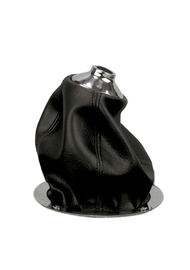Shifter Boot – Classic – 5 in OD Base – Round Boot – Polished Stainless Shifter Ring – Vinyl – Black – Kit