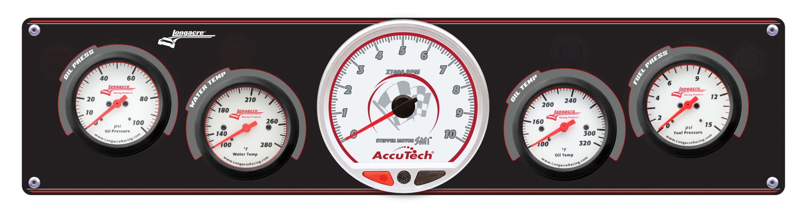 Gauge Panel Assembly – Sportsman Elite – Analog – Fuel Pressure / Oil Pressure / Oil Temperature / Tachometer / Water Temperature – 4-1/2 in / 2-5/8 in Diameter – White Face – Kit