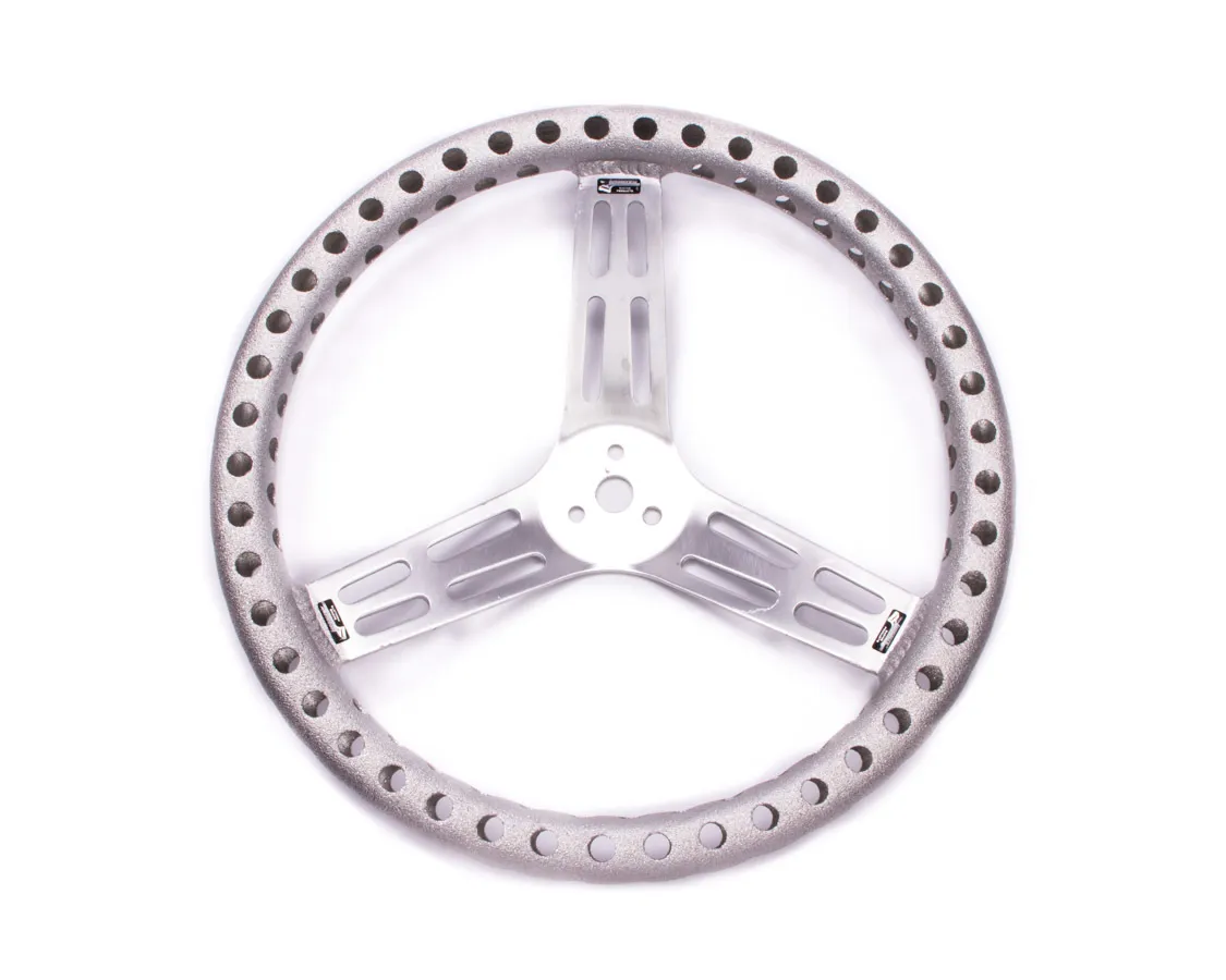 Steering Wheel – Lightweight – 15 in Diameter – 2.5 in Dish – 3-Spoke – Drilled / Shot Peened Grip – Aluminum – Natural – Each