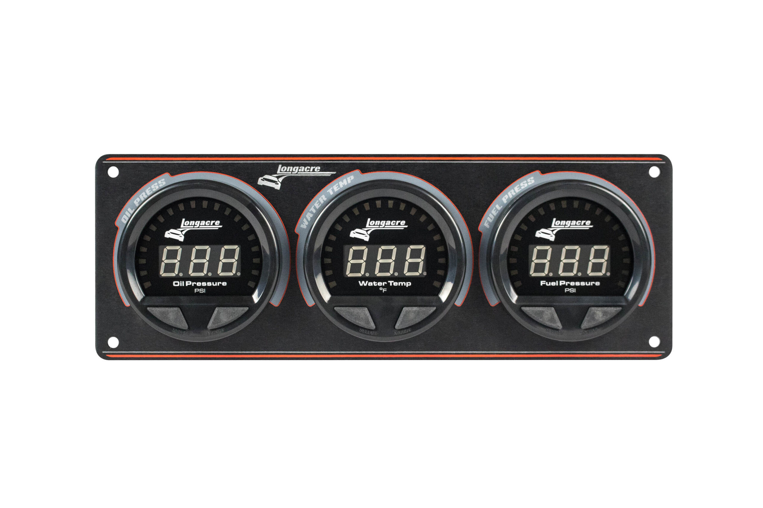 Gauge Panel Assembly – Waterproof LED – Digital – Fuel Pressure / Oil Pressure / Water Temperature – 2-5/8 in Diameter – Black Face – Warning Light – Kit