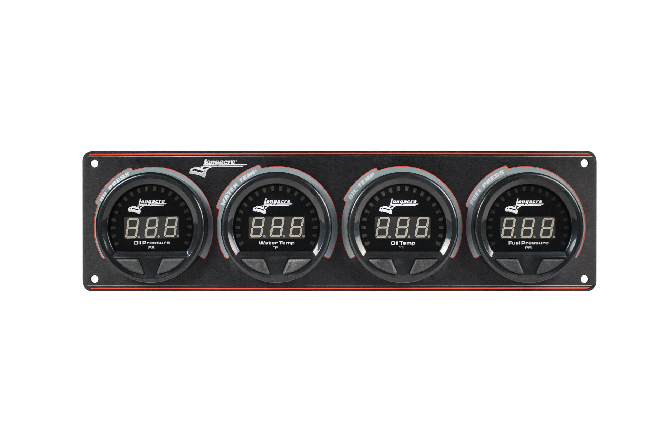 Gauge Panel Assembly – Waterproof LED – Digital – Fuel Pressure / Oil Pressure / Oil Temperature / Water Temperature – 2-5/8 in Diameter – Black Face – Warning Light – Kit
