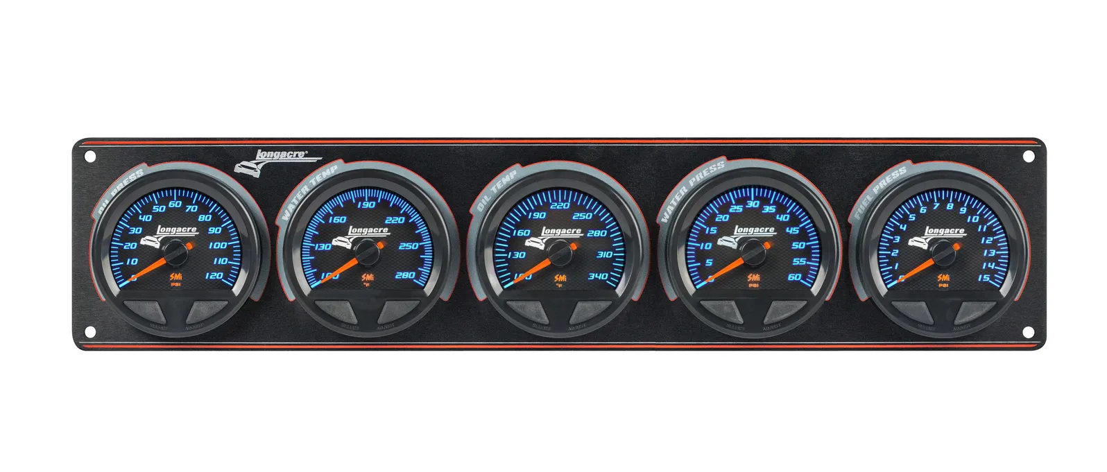 Gauge Panel Assembly – SMi Elite Waterproof – Analog – Fuel Pressure / Oil Pressure / Oil Temperature / Water Temperature / Water Pressure – Black Face – Warning Light – Kit