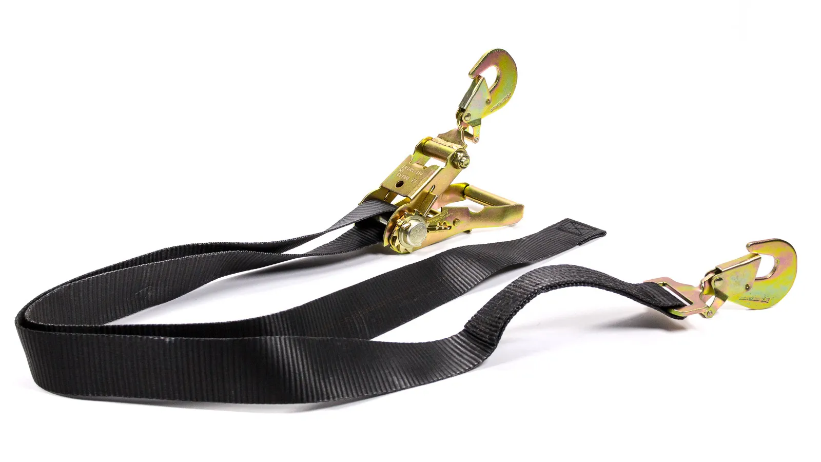 Ratchet Tie Down – 2 in Wide – 8 ft Long – 10000 lb Capacity – Direct Snap Hook – Polyester – Black – Each