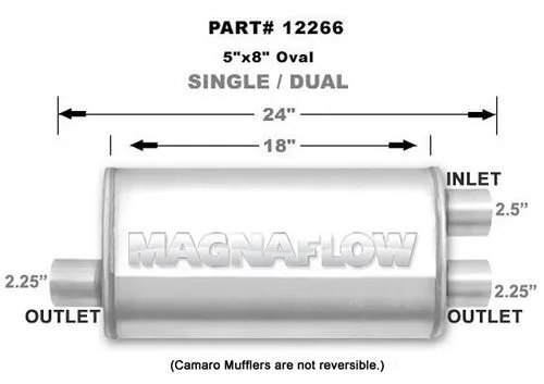Muffler – 2.5 in Offset Inlet – Dual 2.25 Outlets – 18 x 8 x 5 in Oval Body – 24 in Long – Stainless – Natural – Universal – Each