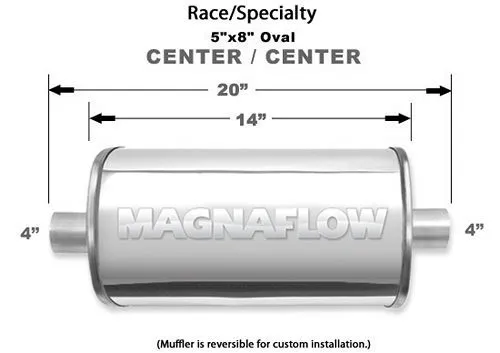 Muffler – Race Series – 4 in Center Inlet – 4 in Center Outlet – 14 x 8 x 5 in Oval Body – 20 in Long – Stainless – Polished – Universal – Each