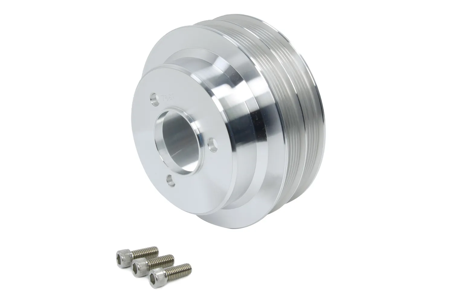 Crankshaft Pulley – High Water Flow Ratio – Serpentine – 6-Rib – 7 in Diameter – Hardware Included – Aluminum – Clear Powder Coat – Long Water Pump – Big Block Chevy – Each
