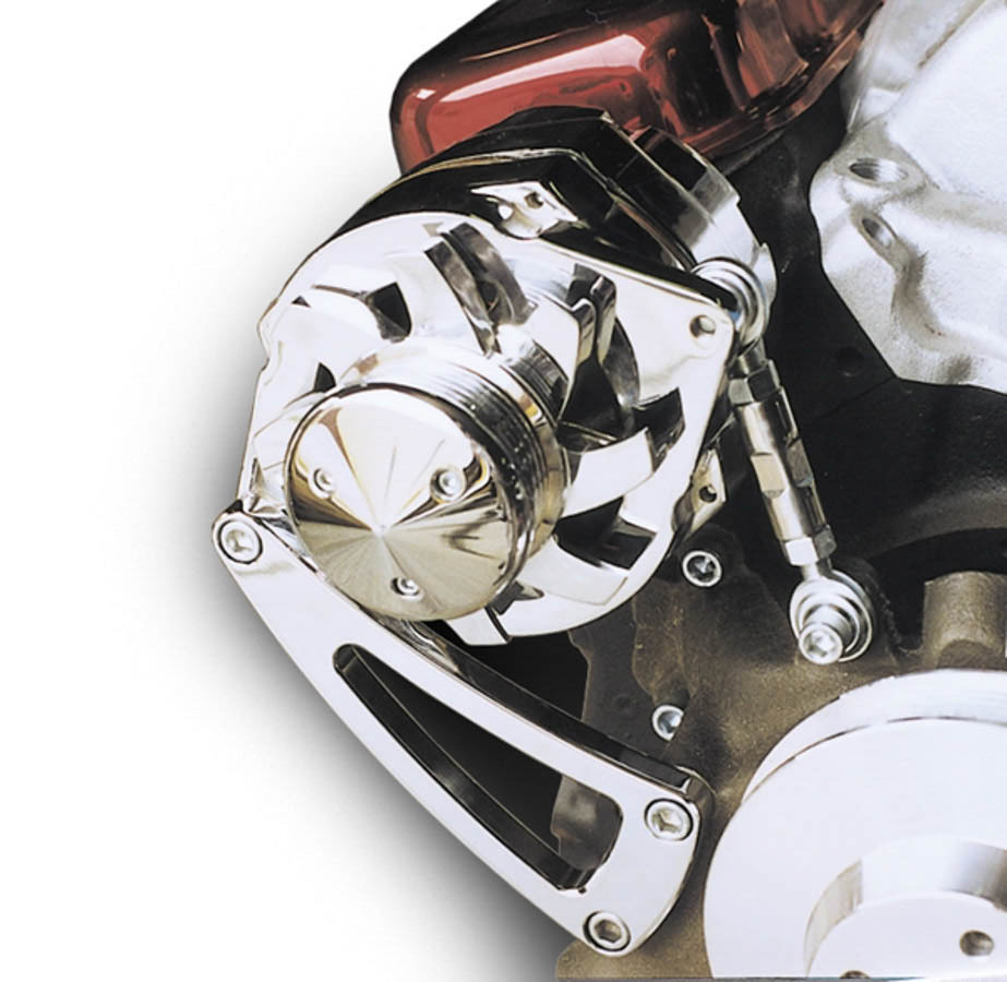 Alternator Bracket – High Performance – Passenger Side – High Mount – Water Pump Mount – Aluminum – Clear Powder Coat – Long Water Pump – GM 10SI Alternators – Big Block Chevy – Kit
