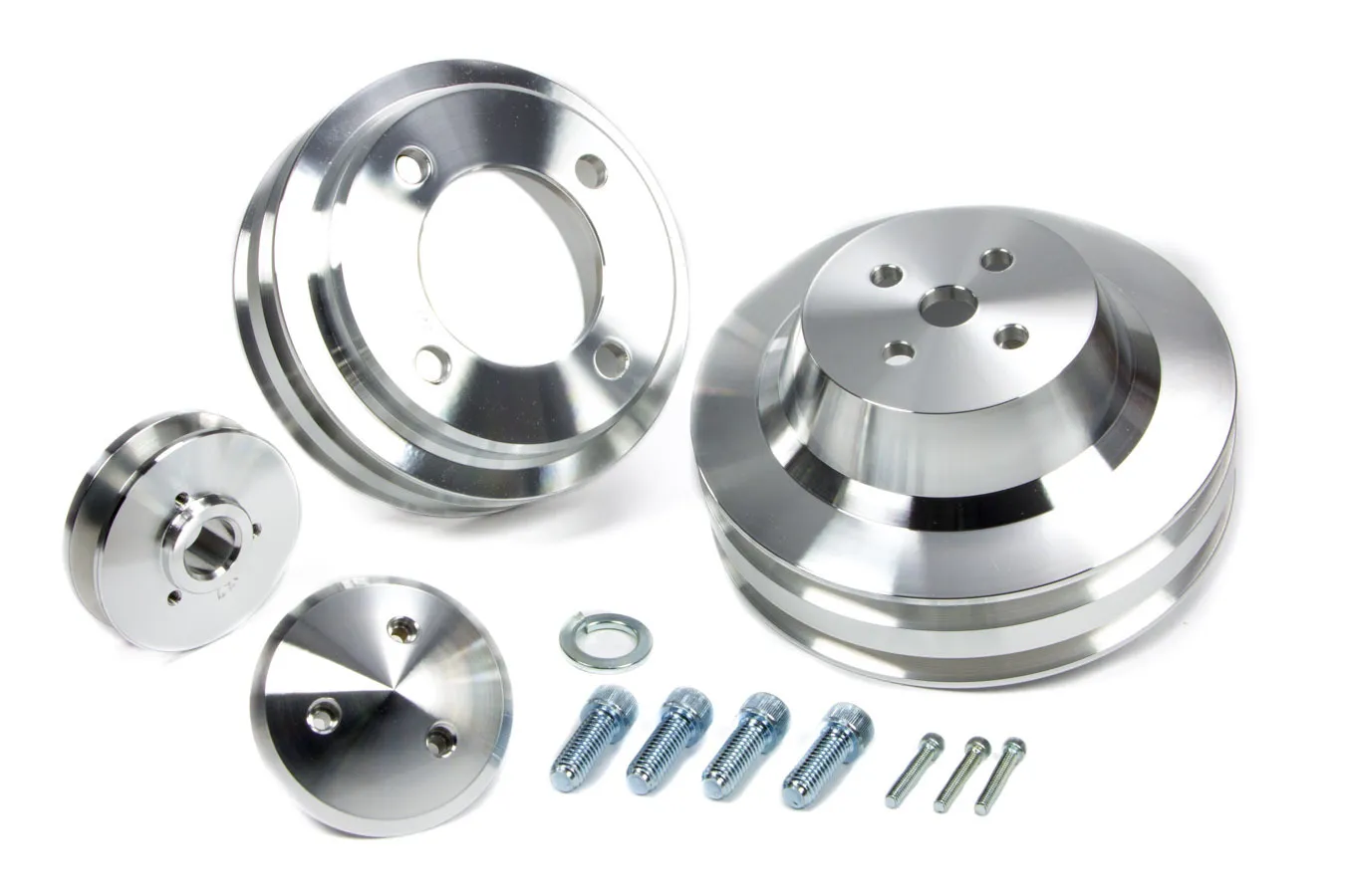 Pulley Kit – Performance Ratio – 2 Groove V-Belt – Aluminum – Clear Powder Coat – Small Block Ford 1965-69 – Kit
