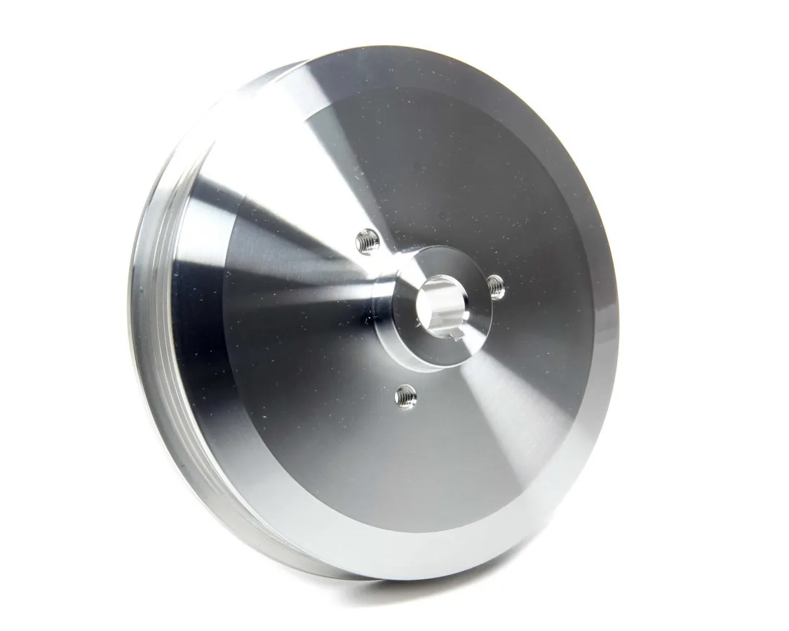 Power Steering Pump Pulley – Serpentine – 5-Rib – Bolt-On – 6 in Diameter – Aluminum – Clear Powder Coat – Long Water Pump – GM Pumps – Each