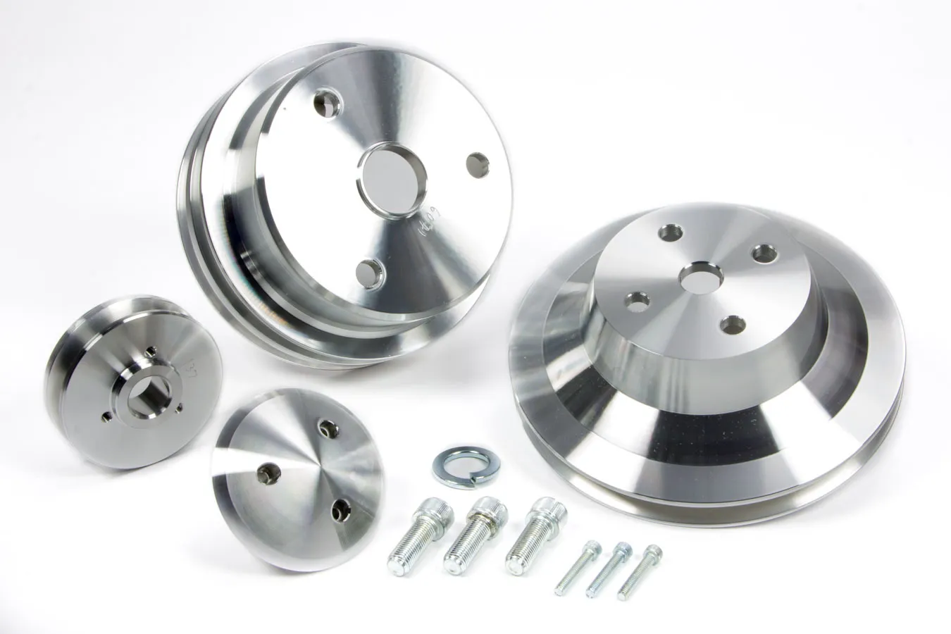 Pulley Kit – Performance Ratio – 2 Groove V-Belt – Aluminum – Clear Powder Coat – Long Water Pump – Small Block Chevy – Kit