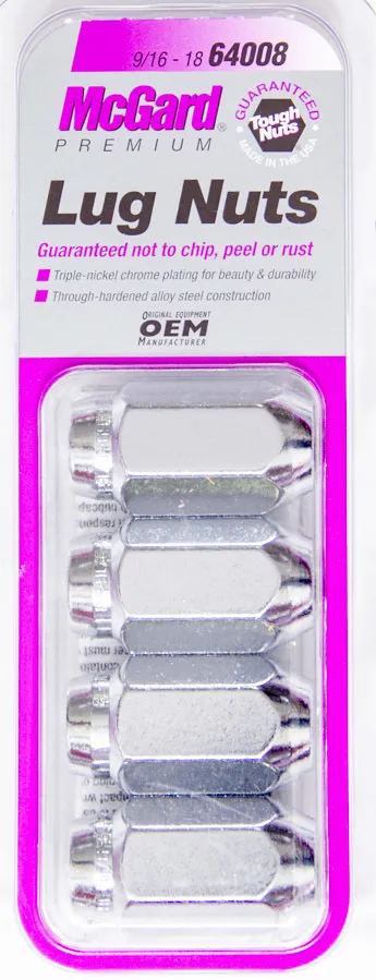 Lug Nut – Premium – 9/16-18 in Right Hand Thread – 7/8 in Hex Head – Cone Seat – Closed End – Steel – Chrome – Set of 4